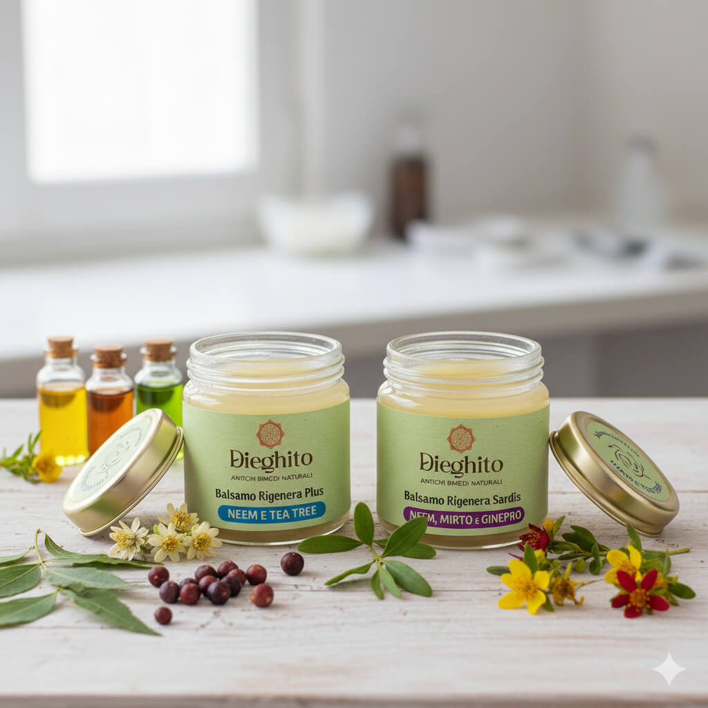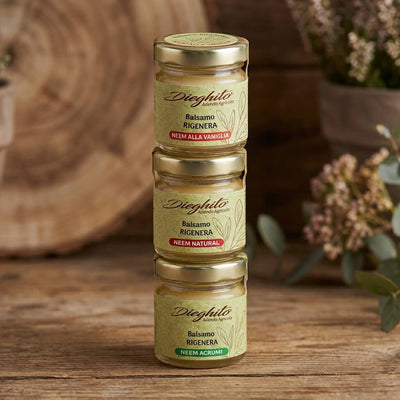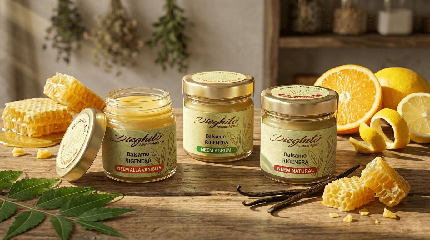 Nascono da ricette semplici e pulite, fatte con neem puro, cera d’api di opercolo e oli naturali altamente concentrati. Li ho pensati per chi convive ogni giorno con una pelle difficile: che si arrossa, brucia, tira, si screpola e non tollera più nulla.